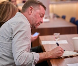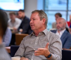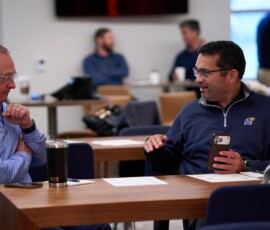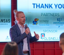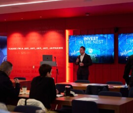 Members of the Oread Angel Investors gathered in historic Allen Fieldhouse for a fall pitch event featuring three companies with ties to the University of Kansas on the Friday before the Dillons Sunflower Showdown. The group was welcomed with a happy hour at the Jayhawk Welcome Center the night before. After the pitches, the group experienced a fireside chat with KU alumni and Ripple CEO Brad Garlinghouse, heard some angel investor insights from Chris Simpson of Polsinelli, and ended the day with a tour of the new David Booth Kansas Memorial Stadium.