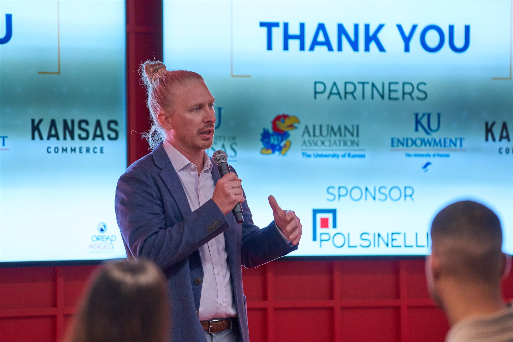 Members of the Oread Angel Investors gathered in historic Allen Fieldhouse for a fall pitch event featuring three companies with ties to the University of Kansas on the Friday before the Dillons Sunflower Showdown. The group was welcomed with a happy hour at the Jayhawk Welcome Center the night before. After the pitches, the group experienced a fireside chat with KU alumni and Ripple CEO Brad Garlinghouse, heard some angel investor insights from Chris Simpson of Polsinelli, and ended the day with a tour of the new David Booth Kansas Memorial Stadium.