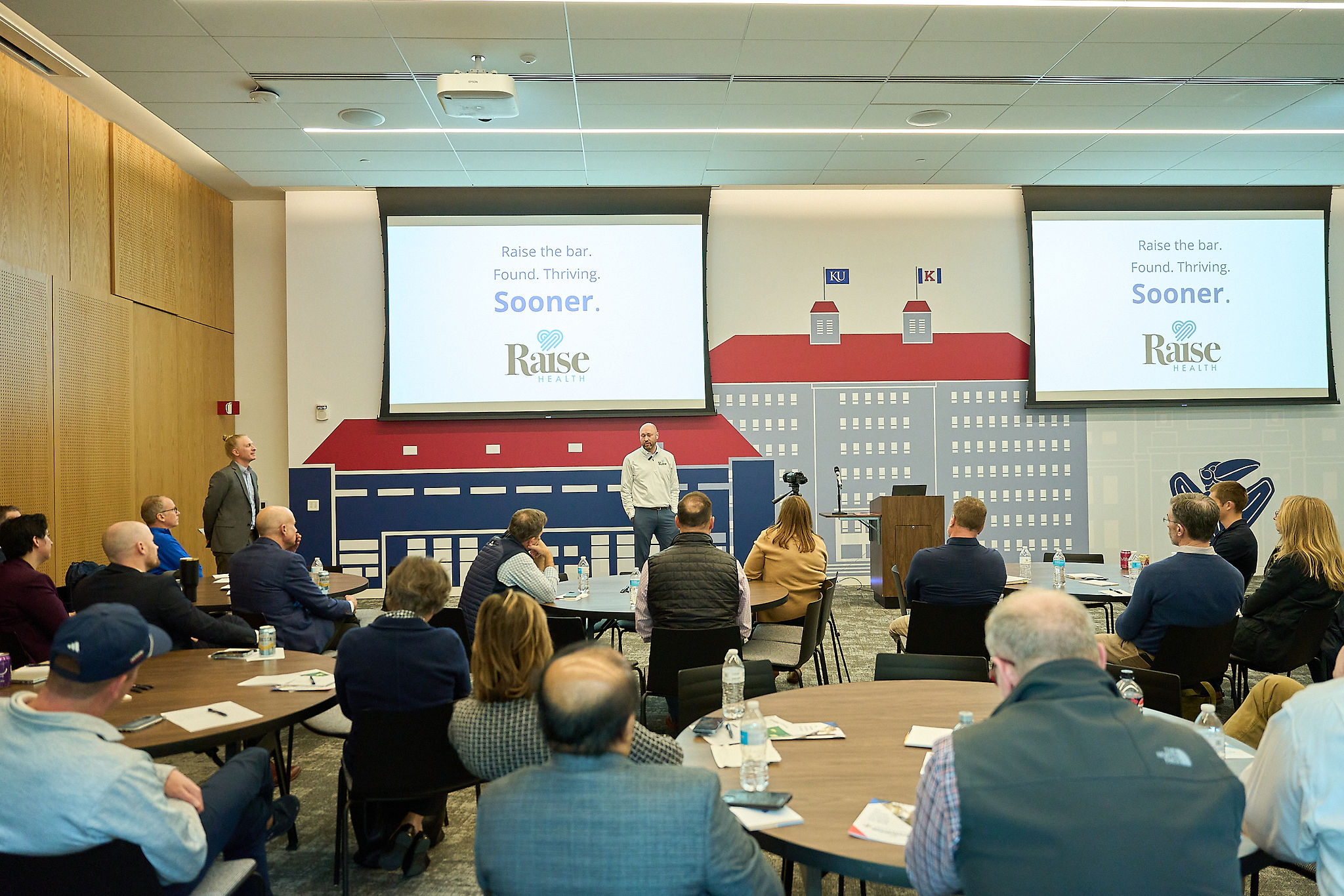 The group of regional angels and investors were welcomed by Park CEO Adam Courtney and University of Kansas Chancellor Doug Girod. The group heard about Kansas’ angel tax credits from Romaine Redman of Kansas Commerce and the launch of The Hill Fund from John Fein before hearing from five Jayhawk-affiliated startups.